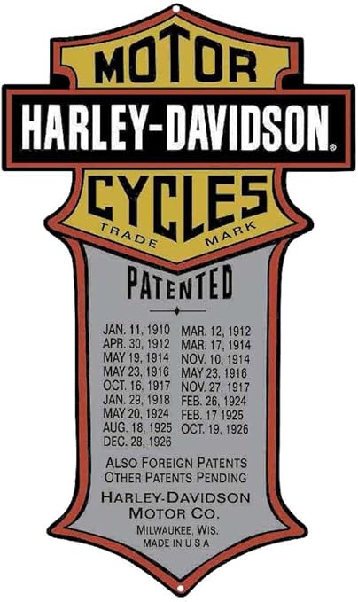 Amazon Com Harley Davidson Patented Dates Tin Metal Sign 11 X 18