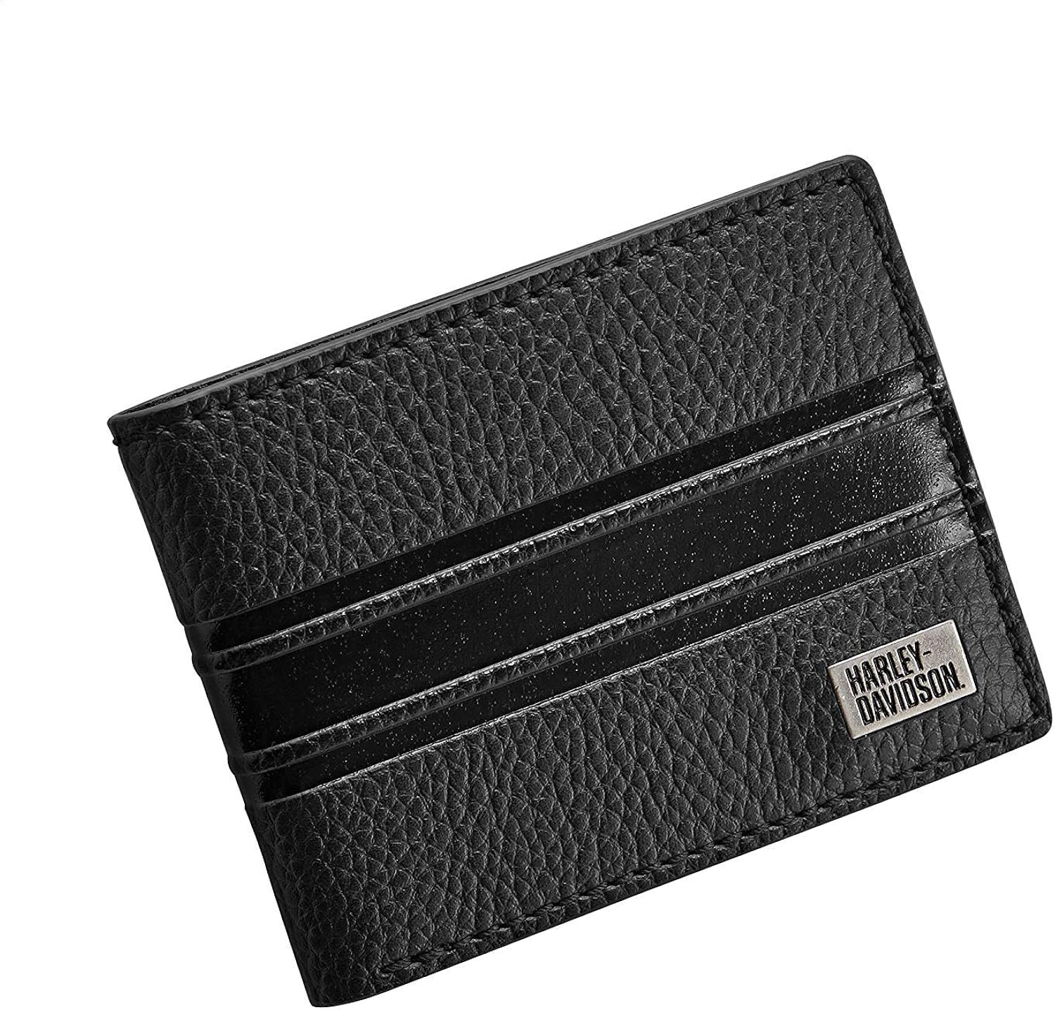 Black Leather Money Clip W Silver Harley Davidson Logo