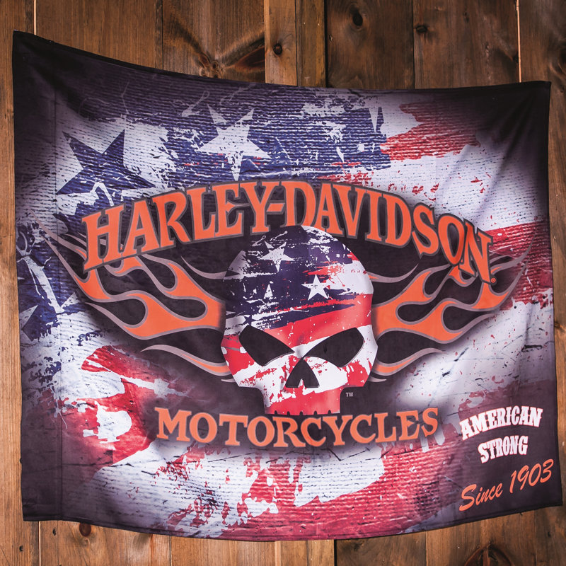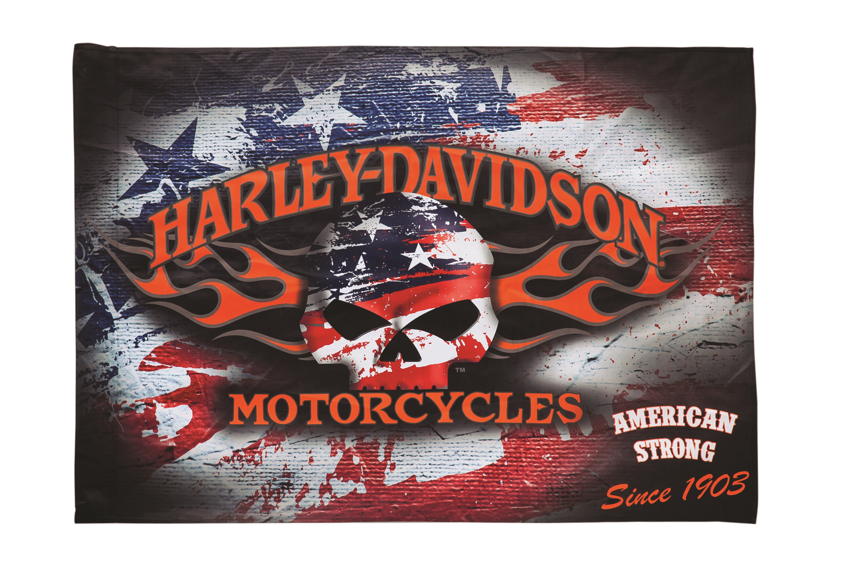 Harley Davidson Logo Fabric Panel Orange Flames Black Gray Shield