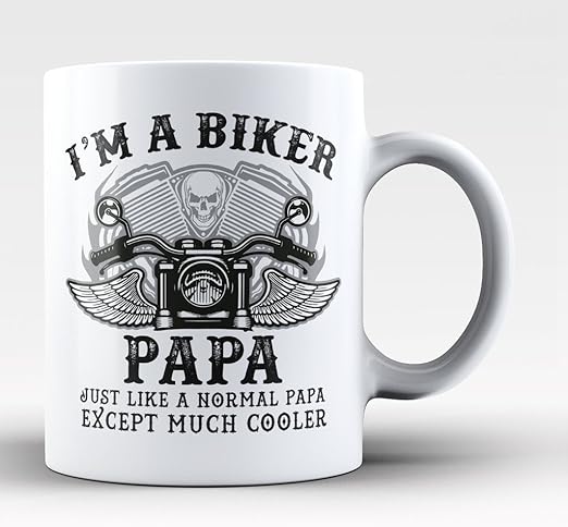 Amazon Com I M A Biker Papa 11 Oz Dad Motorcycle Coffee Mug Cup High Fired White Ceramic With Large Easy Grip Handle Is Perfect Gift Idea For Harley Davidson Dads Fathers Day Grandpas And Husbands
