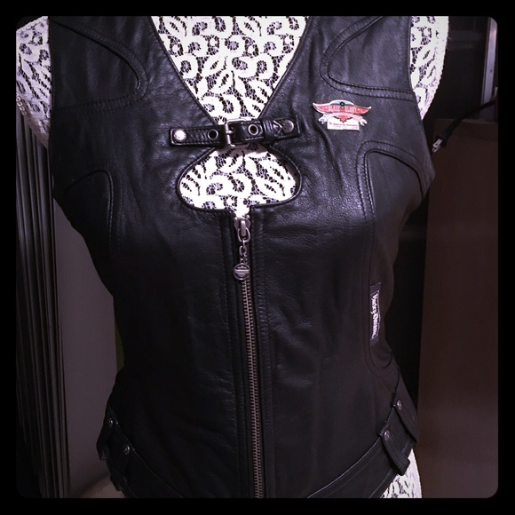 Vintage Harley Davidson Vest Women S Small Black Leather Vest Motorcycle Clothing Leather Biker Vest Gift For Her Sexy Biker Harley Vest