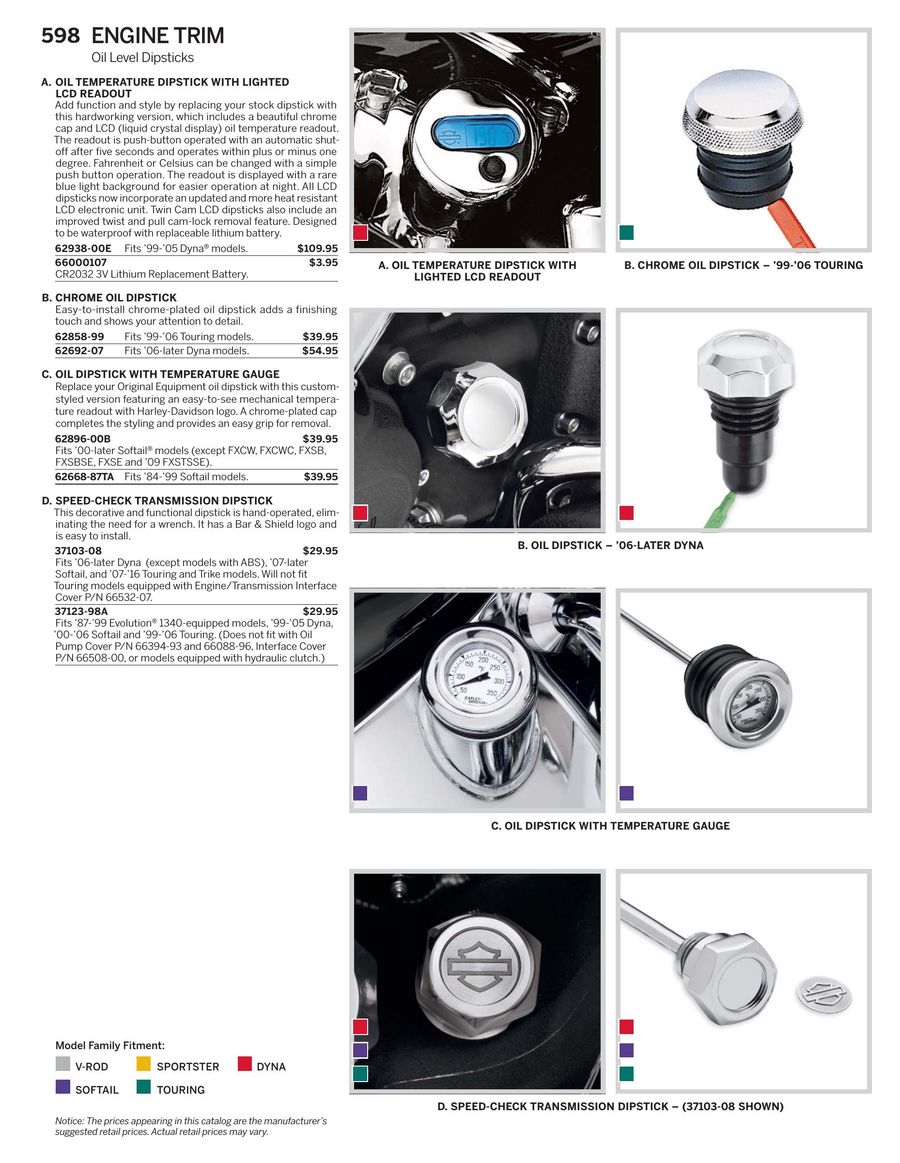 Oil Level And Temperature Dipstick With Lighted Lcd Readout 63004 09a Harley Davidson Usa