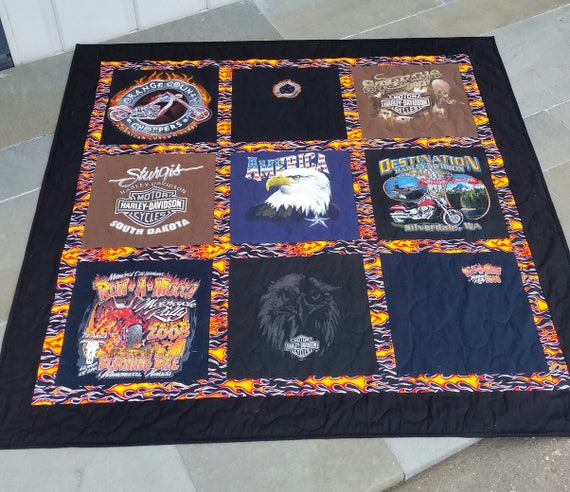 Harley Davidson Tshirt Quilts Memory Custom Quilts Made From Etsy