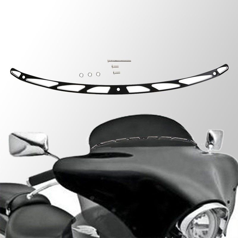 Gzyf black cnc aluminum motorcycle slotted windshield trim compatible with harley davidson touring plhtflhtcflhtcuflhx 1996 2013 a style polished stainless flames pattern windshield trim for harley davidson 96 13 harley davidson electra glide street glide ultra. Black anodize with deep cut styling finish. 14 20 harley davidson touring trike edge cut windshield trim.