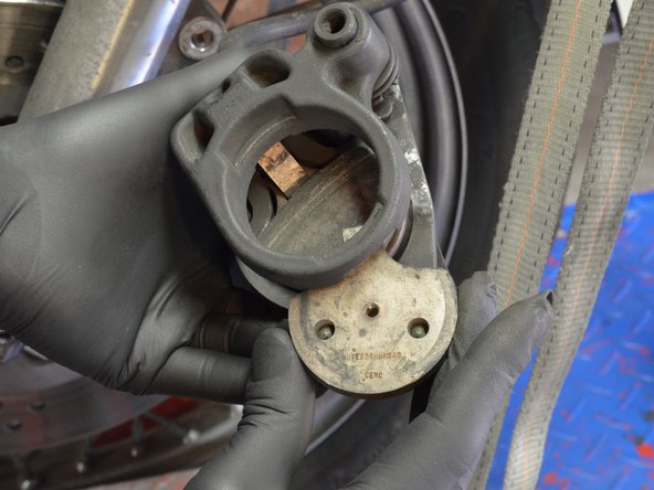 Pull the brake pads and their retaining clip out from the caliper. Note that these brake pads are directional. The front wheel on a 2015 harley street.