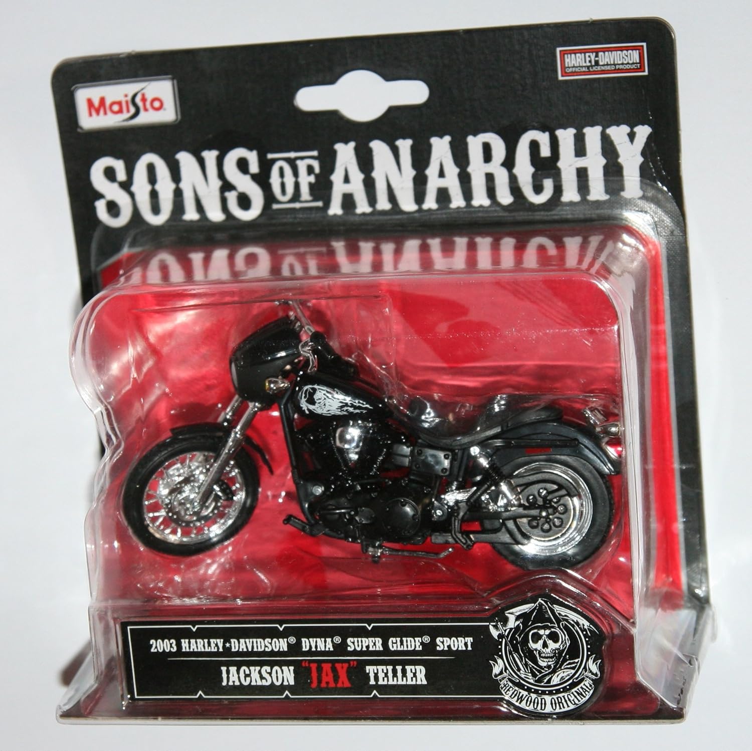 Protagonist jax teller portrayed by charlie hunnam rode a modified 2003 fxd dyna super glide during the series. The bikes torque is 782 ft lbs has a 49 gallon fuel capacity and 953 1016mm borestroke ratio. Thats right teller rides a 2003 dyna super glide sport with custom made t bars which makes the motorcycle stand out from the rest of the pack.
