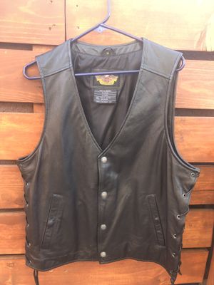 Mens Harley Davidson Leather Vest M L Black Piston Ii Snap Up Bar