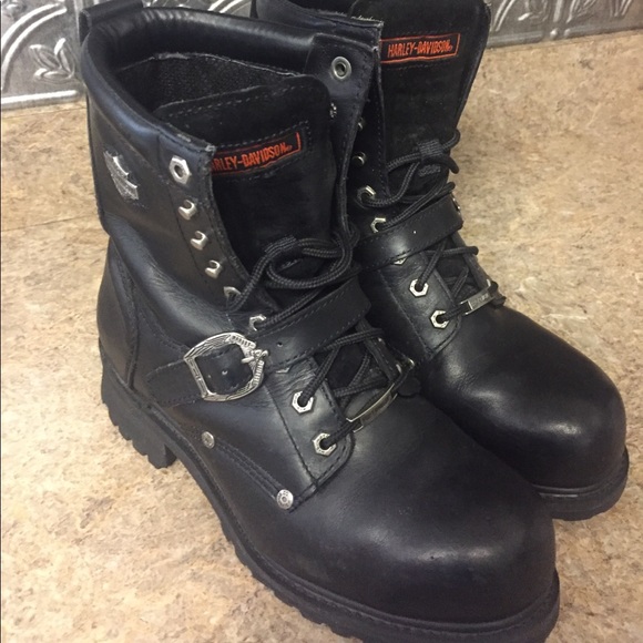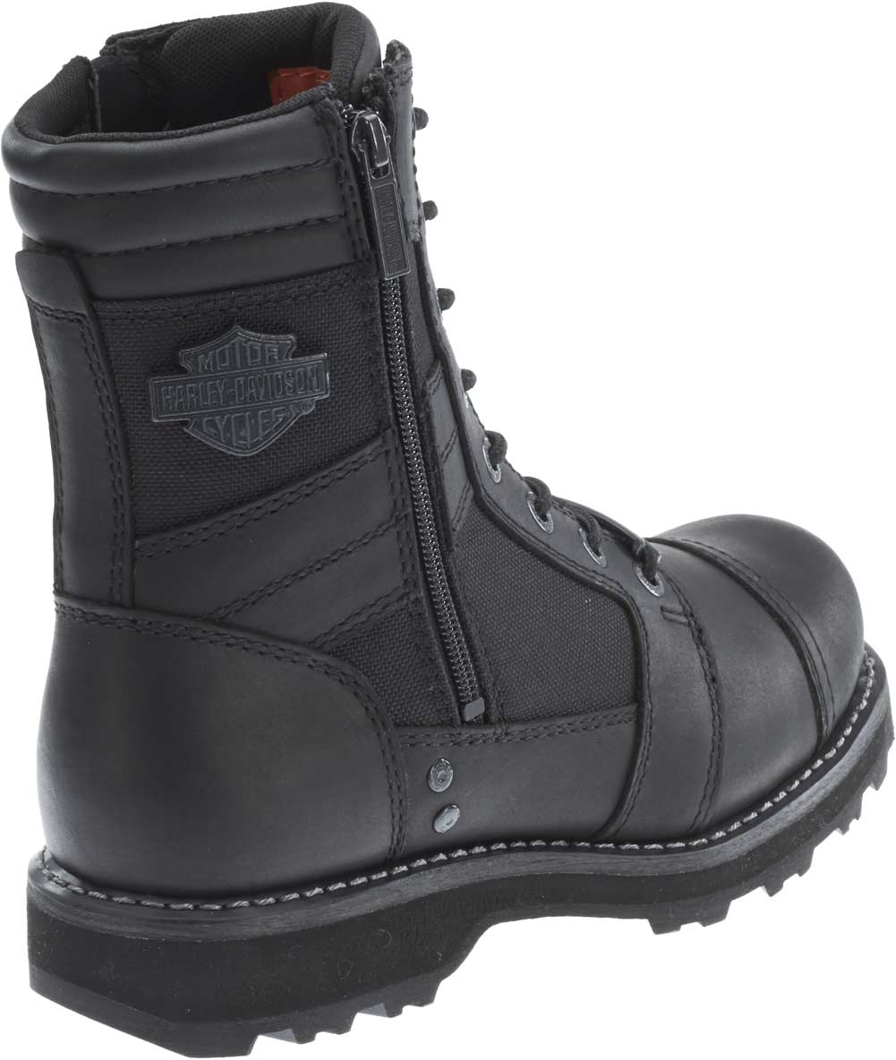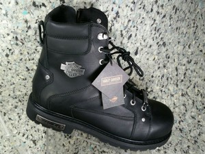 All h d safety toe footwear meets astm standard f2413 11 m i75 c75 to keep you protected from falling or rolling objects. Harley davidson mens diversion black leather motorcycle boots size 13 d94169. Steel toe motorcycle boot with full grain leather upper featuring speed lacing system and logoed plate at side.