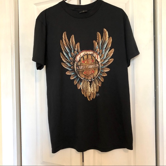 Older Vintage Bootleg Harley Davidson Motorcycles Golden Wings Tee