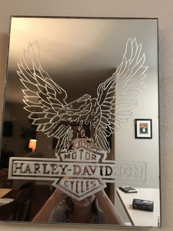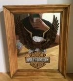 Vintage Harley Davidson Bar Pub Mirror Wooden Frame Large Eagle 28
