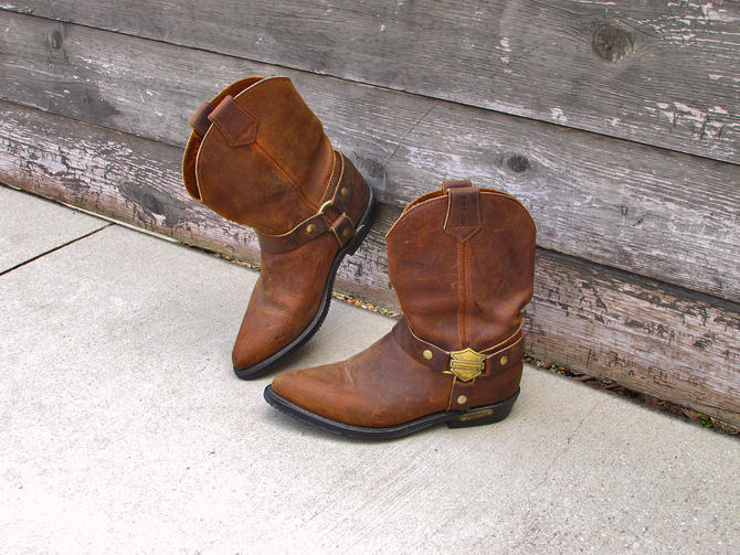Vintage Black Leather Harley Davidson Cowboy Boots For Women Size